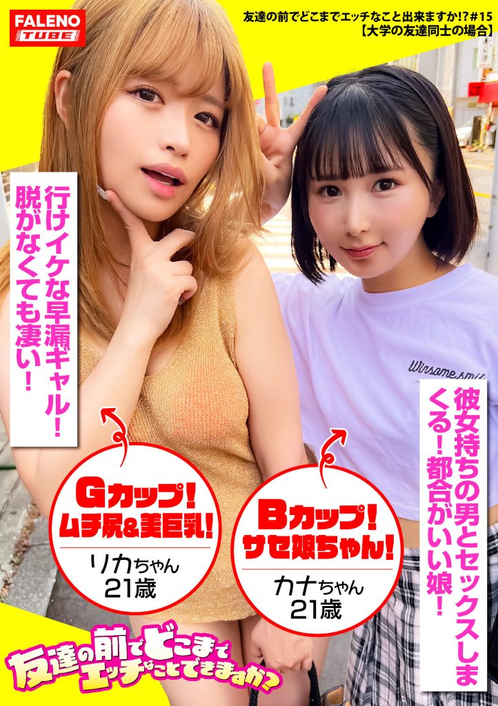 女性同士の友情は成立するのか?女の子同士の友情あるある!番組に参加した友達同士の女の子がインタビューでお互いの本音を垣間見たりしつつ最終的には友達の前で、どこまでエッチなことが出来るのか?を検証する企画ですリカちゃん(21歳/大学生)&カナちゃん(21歳/大学生)見た目は全く雰囲気が違う仲良し友達同士!イケイケなギャルっぽいリカちゃ...