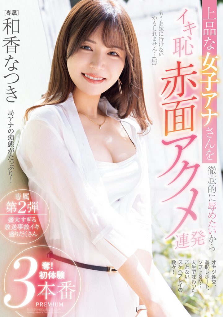 専属第2弾!女子アナ・和香なつきが初めてだらけの3本番!上品な美女を超恥ずかしい初体験で徹底的にイカせたい!まずは上司より年上のオジサンにベロ舐められSEX!脇舐めアナル舐めで赤面アクメ!次は逆にM男をにっこりフェラチオ痴女責め!性感オイルでスレンダー美ボディを敏感開発!ガクガク実況しながら潮吹き絶頂!目隠し拘束で身動き取れず痴態丸...