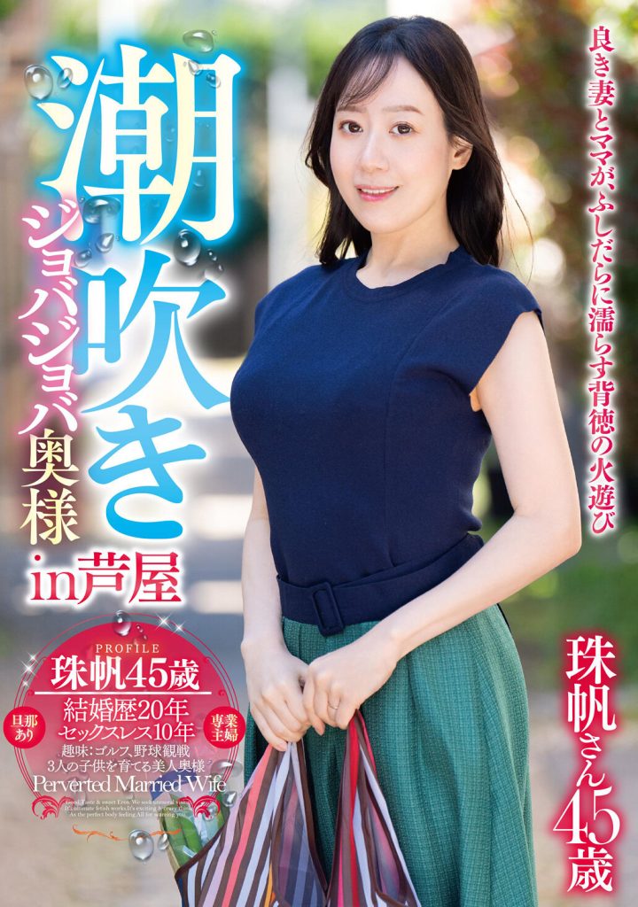 非日常的な不貞行為に理性を忘れ、貪欲な肉欲ととめどなく溢れ出る愛液、潮をカメラの前で曝け出す美人奥様のAVドキュメント。結婚歴20年、セックスレスの珠帆さん45歳が持て余した性欲を発散すべくAV出演。良きママもカメラの前では欲求不満の疼き妻「もうオナニーでは満足できないの…」。10年振りの男根に嬉潮を撒き散らしながら歓喜の絶頂!!